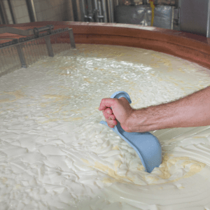 Stainless steel vats and specialized cutters help in uniform coagulation and cutting.